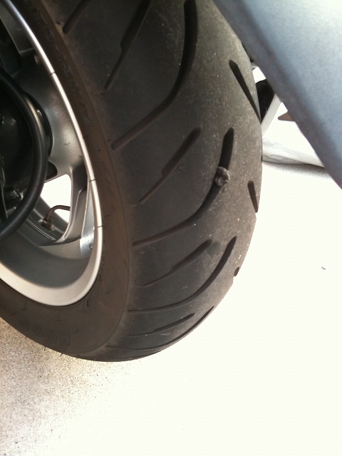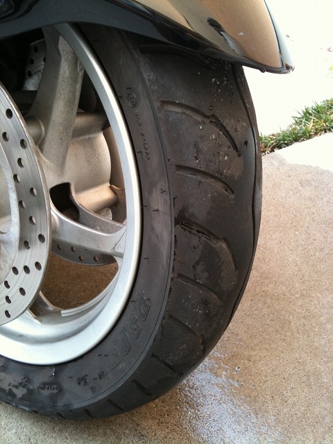 一日経過後、フロントタイヤをチェックして見ましたが、