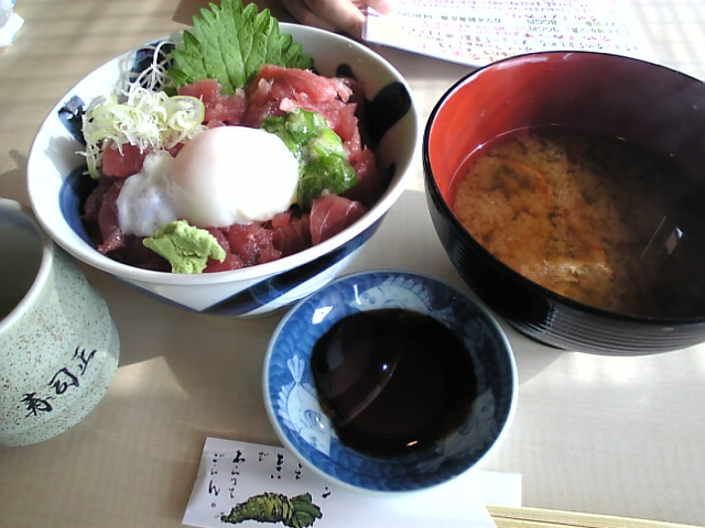 ららミュウ寿司正さんで、マグロの中落ち丼、