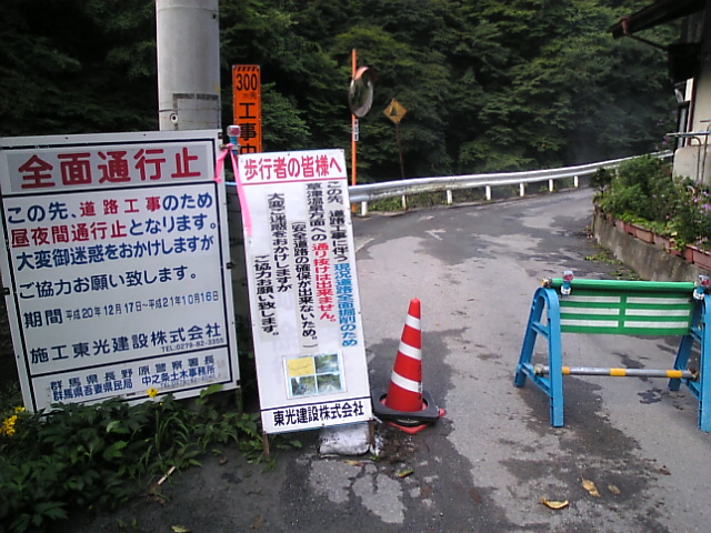 あら、草津に抜ける道路は通行止めでした。