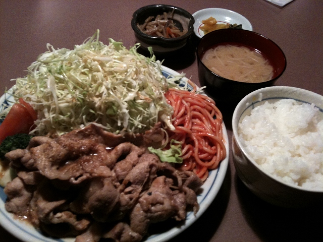 生姜焼き定食です!キャベツの量がすっげぇ!!!
