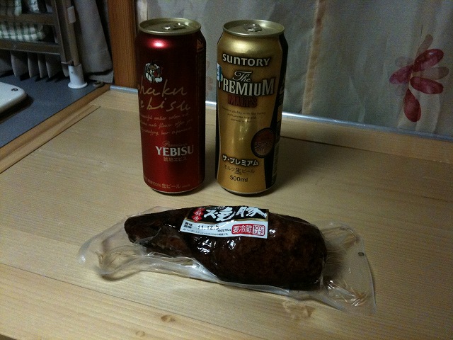 シルクエビス&プレモル&焼豚で乾杯です!!!