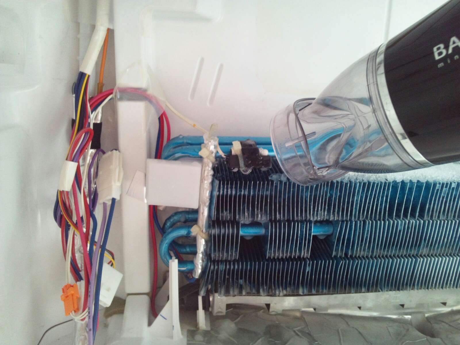 凍っちゃってるので、ドライヤーで霜を溶かします。