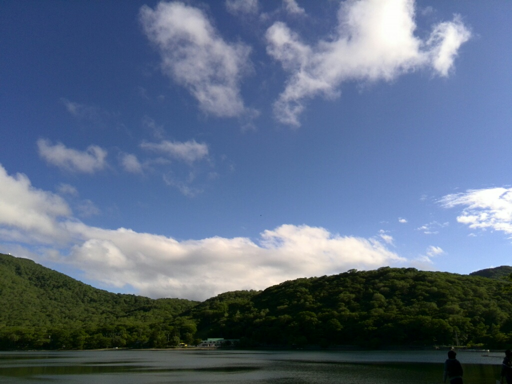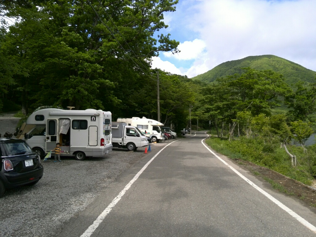 下界は29℃ありましたが、湖畔の日陰に停めると、