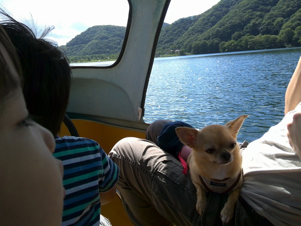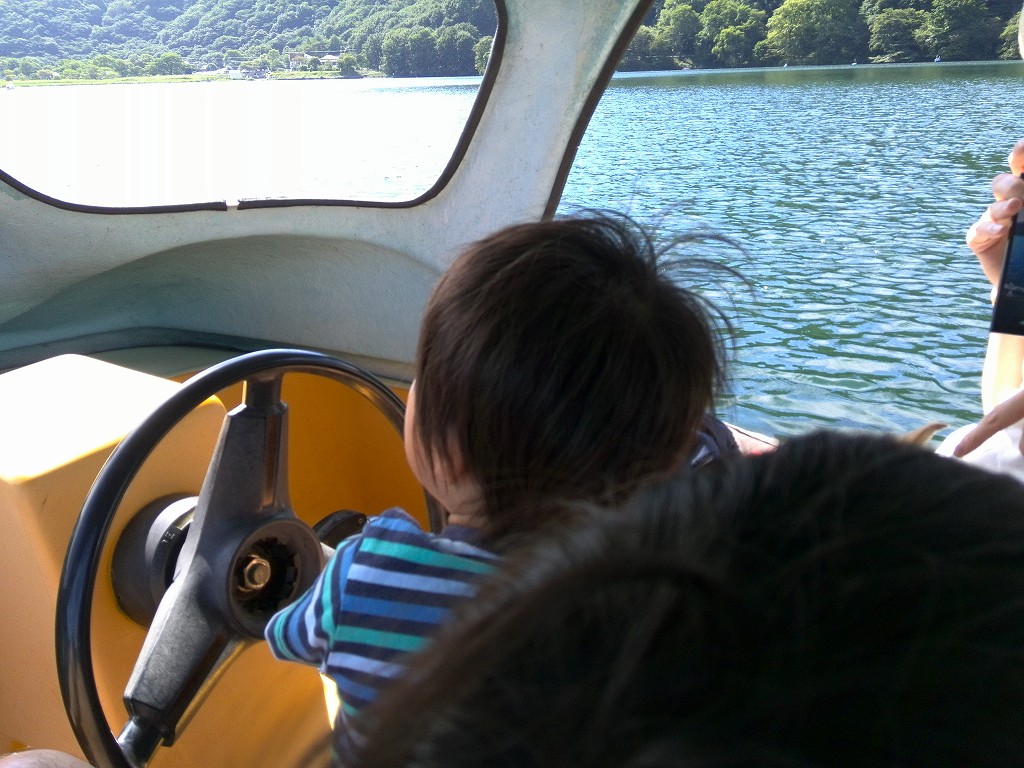 榛名湖でボートに乗り、