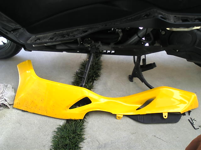 ①サイドレッグシールドを外す。