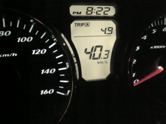 続き~待ち乗りがメインですが、燃費は28km/L前後での推移です。信号の待ち時間が長いと、燃費系の数値がトントン下がっていきます。。。国道で80km位をキープしている時は34Km/Lは示します。43の時も給油量で計算して28Km/Lだったので、anaさんのおっしゃるとおり、大差はないようですね。
